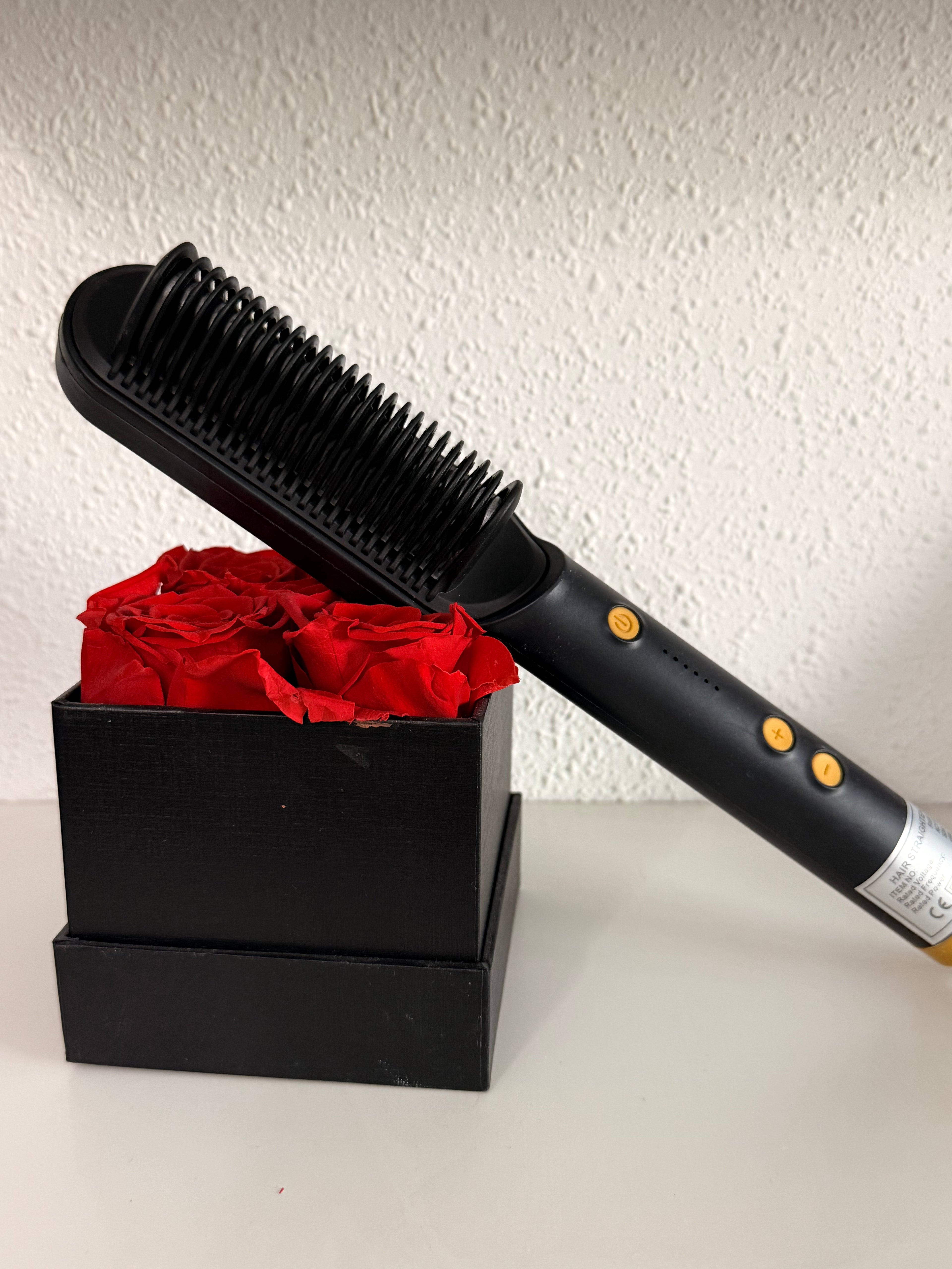 Cepillo eléctrico diseñado para alisar el cabello de manera rápida y sencilla, combinando la suavidad de un cepillo con el calor de una plancha. Ideal para uso diario, proporciona un acabado liso, brillante y sin frizz, cuidando el cabello mientras lo estiliza. Compacto, fácil de manejar y seguro para todo tipo de cabello.